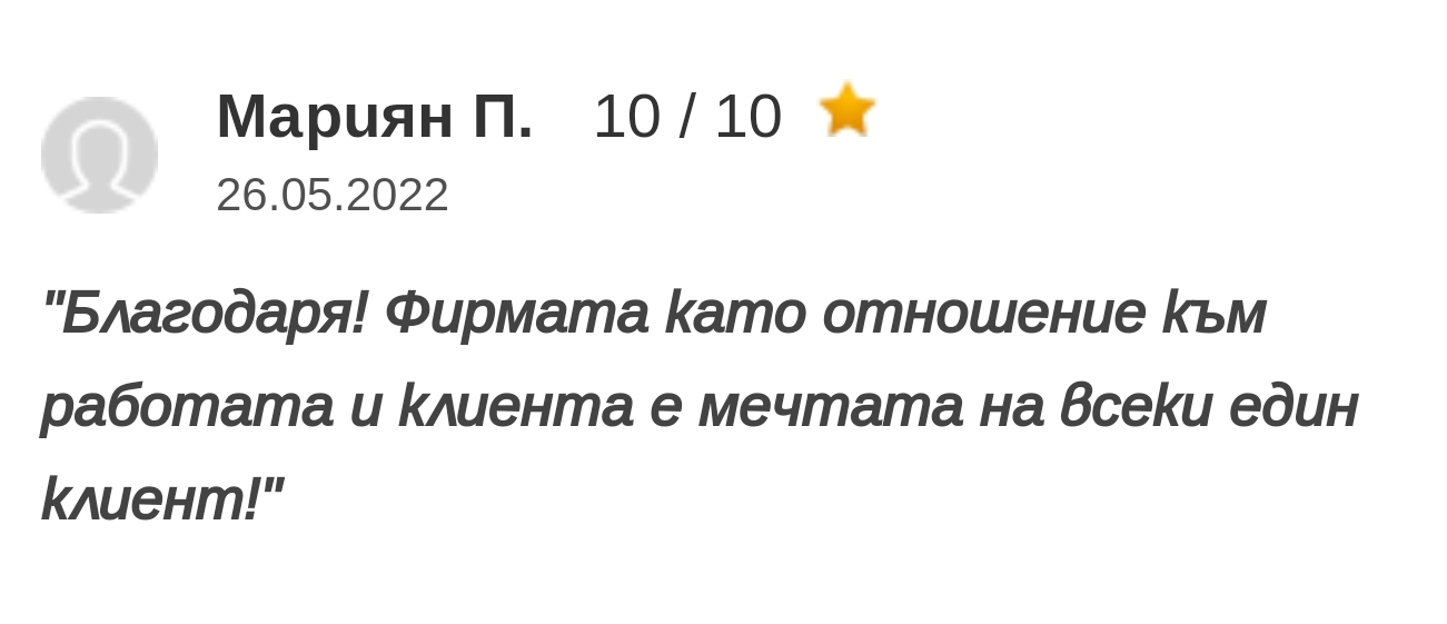 Вярваме, че добре свършената работа днес изгражда репутацията ни утре! По-добри вместо по-евтини!